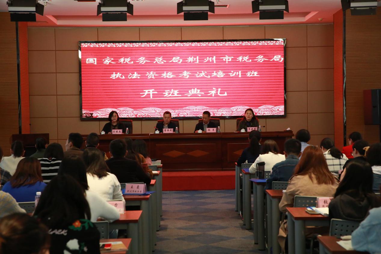 此次培训旨在提高荆州市税务局近两年新招录税务干部的税收业务知识,提高依法行政的能力和水平,并确保90名学员全部通过11月份国家税务总局组织的税收执法资格考试,取得税收执法资格证书。此次培训为全日制脱产学习将采取课堂讲授、互动交流、专题辅导、模拟测试“四位一体”的方式进行教学,还开设“心理压力调试”课程,帮助学员克服紧张情绪,以良好的状态迎接全国统一执法资格考试。