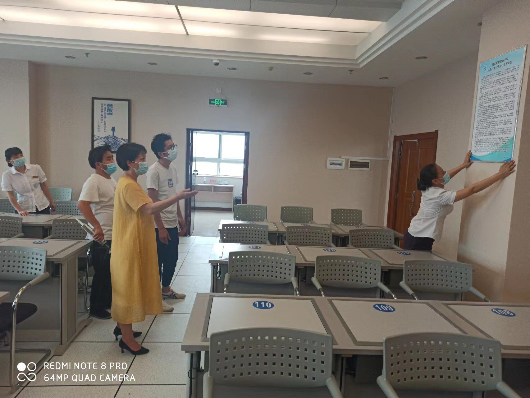 5月27日实训与国际合作中心许亮科长在干训楼进行了现场张贴指导并强调了实验(训)室安全使用的重要性。