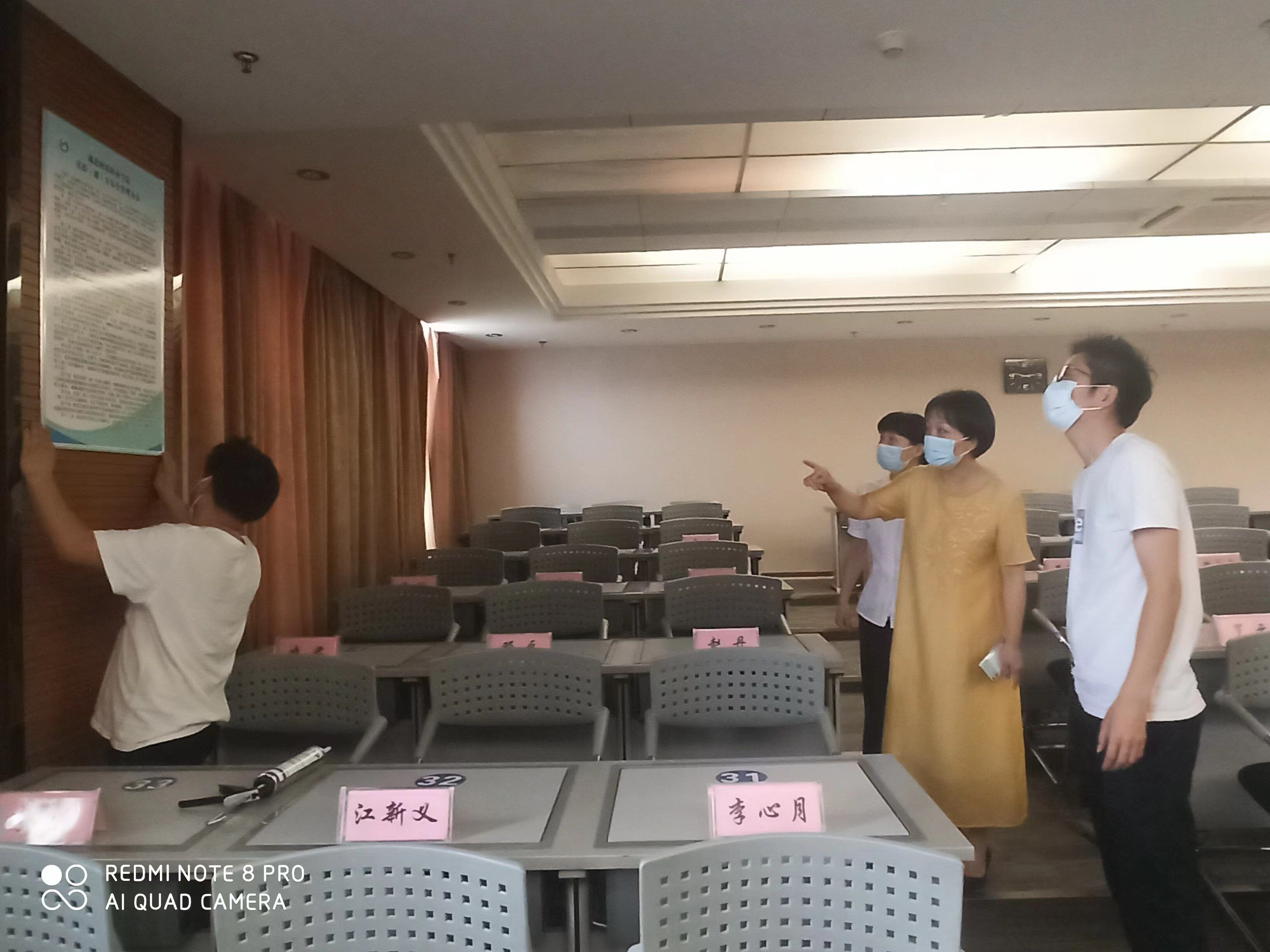 5月27日实训与国际合作中心许亮科长在干训楼进行了现场张贴指导并强调了实验(训)室安全使用的重要性。