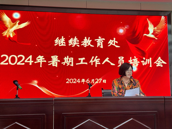 6月27日下午,继续教育处在干训楼14楼2号会议室召开2024年暑期工作人员培训会,学校党委委员谢军明出席会议并讲话,处长王晓春主持会议,学院相关部门及处室全体人员参会。