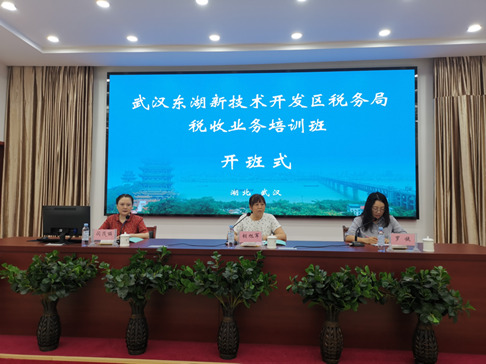 8月26日上午,武汉东湖技术开发区税务局税收业务培训班在湖北财税职业学院白沙洲校区顺利开班。区局党委委员、总会计师胡旭军、湖北财税职业学院思政课部主任闵茂丽出席开班式并讲话,区局各部门业务骨干共42人参加开班。